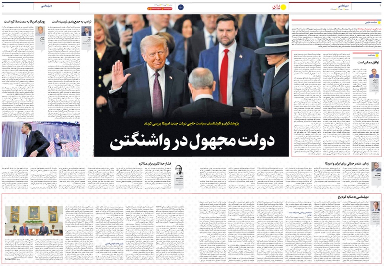 روزنامه ایران، ارگان مطبوعاتی دولت، سه صفحه خود را به طور کامل به ارزیابی بازگشت ترامپ به قدرت اختصاص داد.