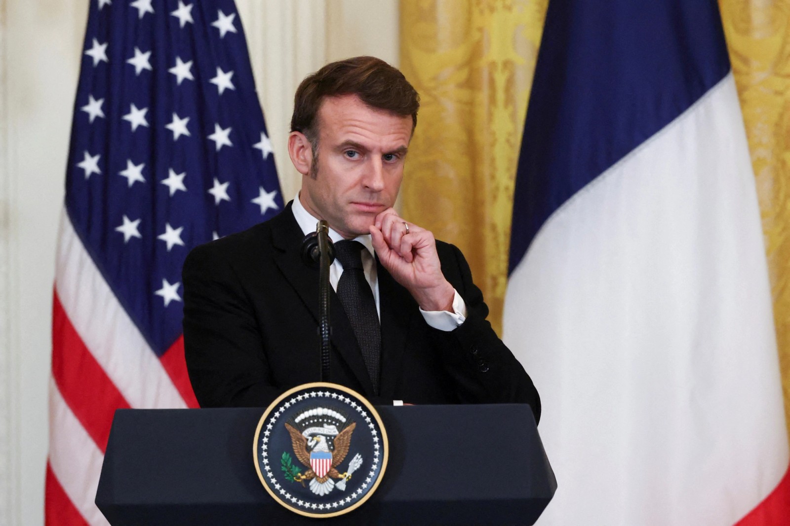 ترامپ دوشنبه، شش اسفند، پس از دیدار با مکرون در یک کنفرانس خبری در کاخ سفید گفت که این دیدار، یک گام دیگر در مسیر پایان جنگ اوکراین بود و مکرون موافق است که هزینه و بار جنگ اوکراین باید بر دوش اروپا باشد.