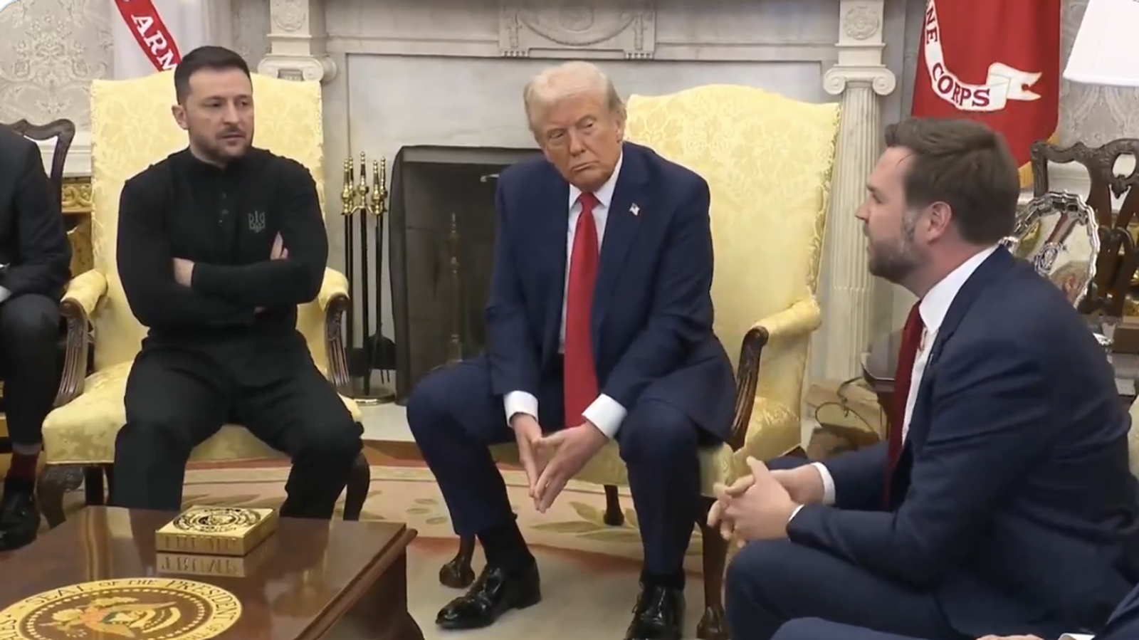 جِیدی ونس، معاون رئیسجمهور ایالات متحده، مداخله کرده و گفت که زلنسکی با حضور در دفتر بیضیشکل و مطرح کردن مواضعش، بیاحترامی کرده است. ترامپ نیز با او همعقیده بود.