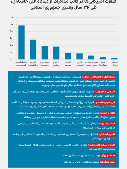 این صفتها نشاندهنده نگاه تقابلی به آمریکاست که با تنشهای منطقهای و ادامه فشارهای اقتصادی همخوانی دارد.
