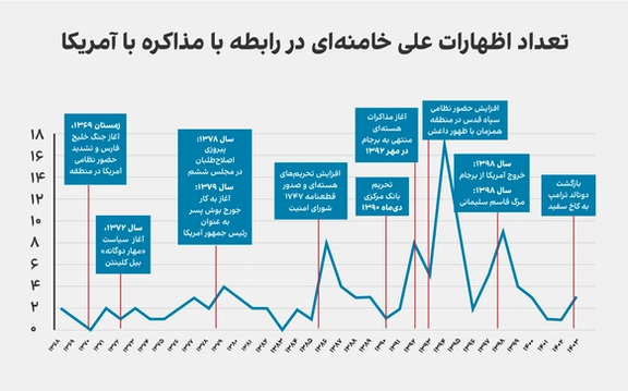 اکنون در فروردین ۱۴۰۴، نزدیک به ۳۵ سال و هشت ماه از آغاز رهبری خامنهای و آن دیدار گذشته است. بررسی تمام ۱۱۹ سخنرانی، خطبه نماز جمعه و دیدارهای خامنهای بهعلاوه دو نامه طی این سالها نشان میدهد در این مدت، رویکرد خامنهای به مذاکره با آمریکا تقریبا همان است که روز اول بود.