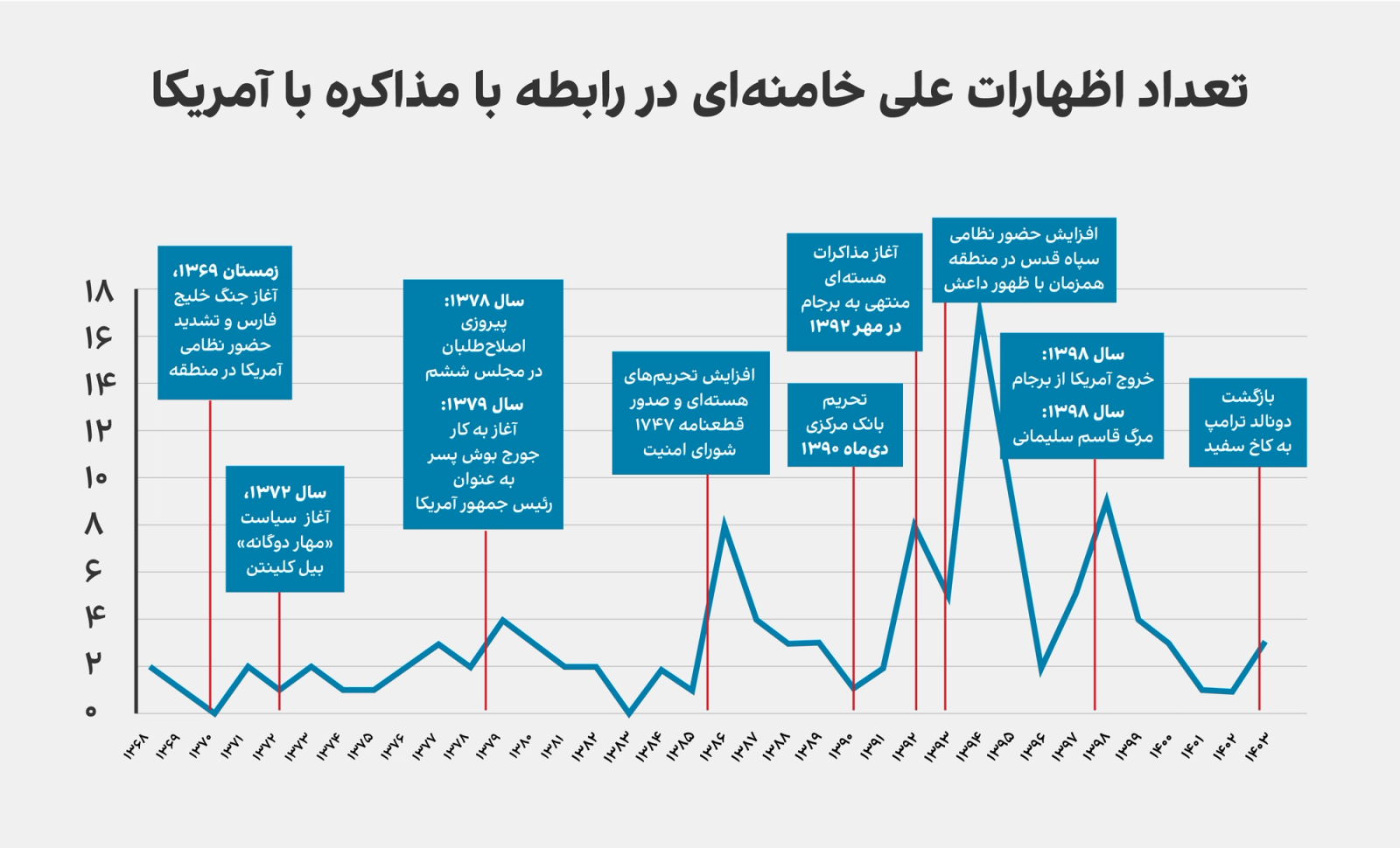 تعداد سخنرانی‌ها، صرف‌نظر از محتوا، در مقاطعی افزایش یافته که با وقایع سیاسی داخل ایران، آمریکا و منطقه رابطه معناداری داشته‌اند.