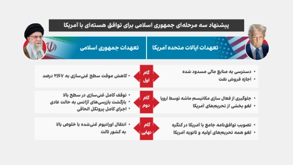 ایراناینترنشنال از طریق منابع دیپلماتیک در تهران مطلع شده است وزارت امور خارجه جمهوری اسلامی در جریان مذاکرات شنبه گذشته در مسقط، طرحی سهمرحلهای را به آمریکا پیشنهاد کرده که هدف آن کاهش تنشهای هستهای در ازای رفع تحریمها و دسترسی به داراییهای مسدود شده ایران است.