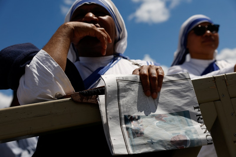 رم – یک راهبه روزنامهای با تصویر پاپ فرانسیس در دست گرفته است.