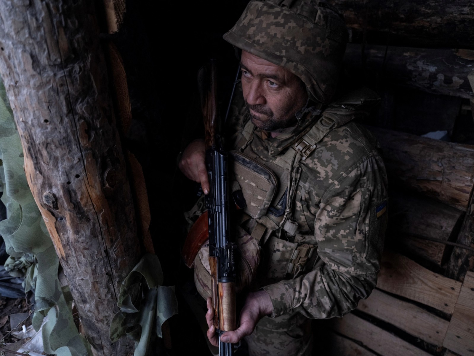 یک سرباز ارتش اوکراین در خط مقدم نبرد با روسیه در منطقه دونتسک، چهارم اردیبهشت