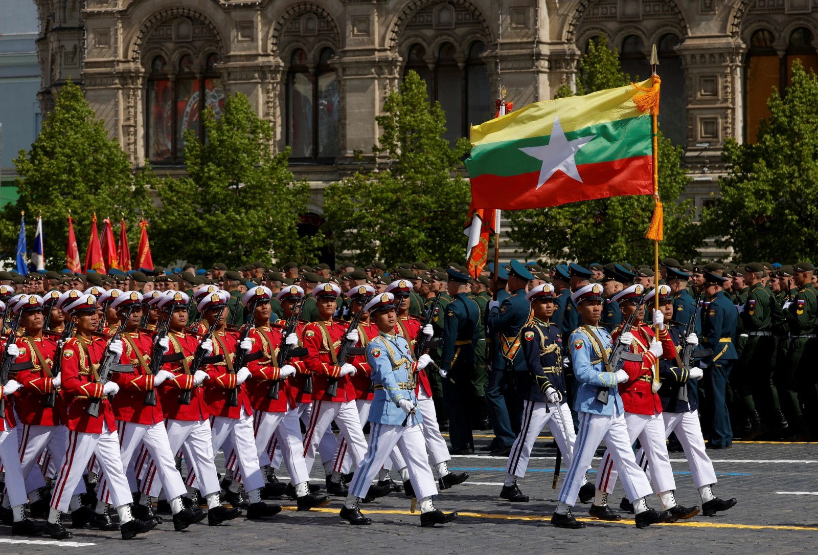 در رژه امروز، یک گردان از سربازان چینی نیز برای نخستین بار در میدان سرخ مسکو رژه رفتند و جنگندهها بر فراز آسمان شهر به پرواز درآمدند.