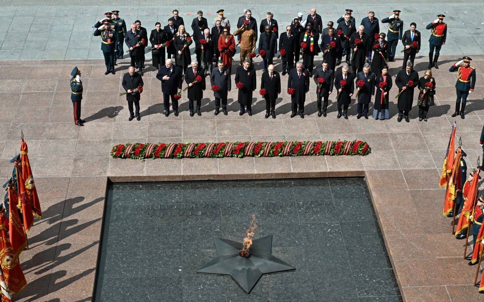بر اساس گزارش این روزنامه، ولادیمیر پوتین، رییسجمهوری روسیه در مراسم امروز میزبان رهبران چین، برزیل و بیش از ۲۰ کشور دیگر بود.