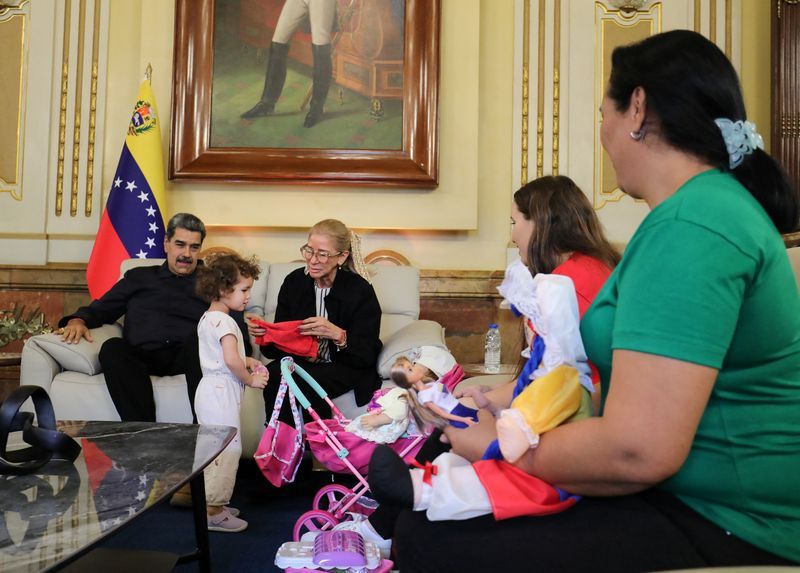به گزارش خبرگزاری رویترز، تصاویر پخش شده از تلویزیون دولتی ونزوئلا، سیلیا فلورس، همسر رییسجمهوری را نشان داد که کودک دو ساله را در فرودگاه بینالمللی کاراکاس در آغوش گرفته است.