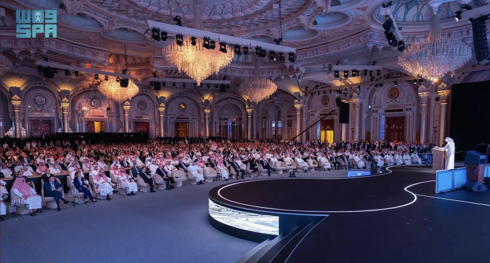 مجری برنامه، ویم الدخیل (خبرنگار زن تاریخساز در عربستان) ابتدا محمد بن سلمان را معرفی میکند و بعد ترامپ را. صدای تشویقها طولانی و شدید است. صدها میهمان به خاطر نبودن جا، ساعتها سر پا ماندهاند تا سخنرانی این دو را بشنوند و البته صدها تن هم نشستهاند.