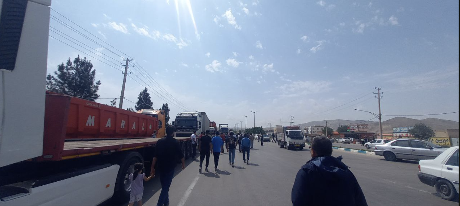 کامیون‌داران در تصاویر ارسالی به ایران‌اینترنشنال اعلام کرده‌اند تا زمان تحقق مطالبات صنفی، به اعتصاب ادامه خواهند داد.
