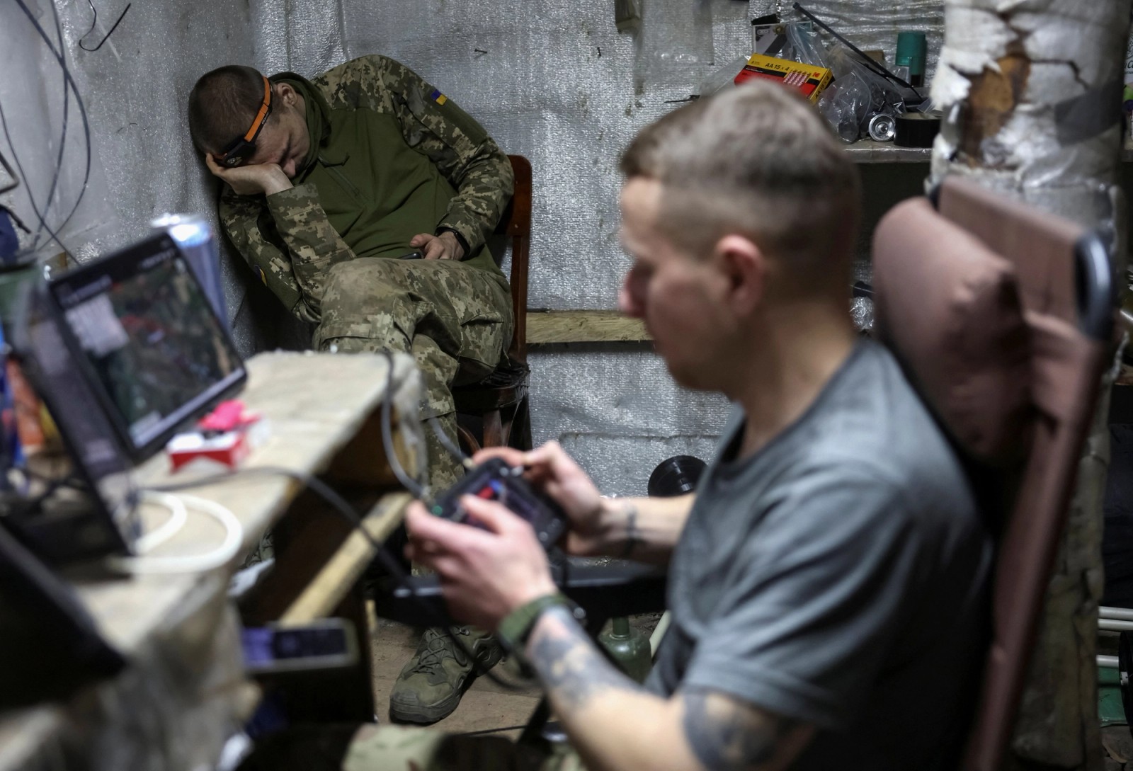 نظامی اوکراینی در حال هدایت یک پهپاد، منطقه خارکیف، ۱۶ خرداد