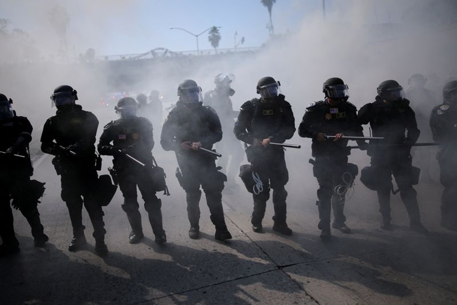 تصاویر و ویدئوهای منتشرشده نشان میدهند که معترضان شعار «شرم بر شما» را خطاب به نیروهای پلیس سر دادهاند و برخی نیز به سوی آنها اشیایی پرتاب کردهاند. همچنین گروهی از معترضان بزرگراه ۱۰۱ در مرکز لسآنجلس را مسدود کردند.