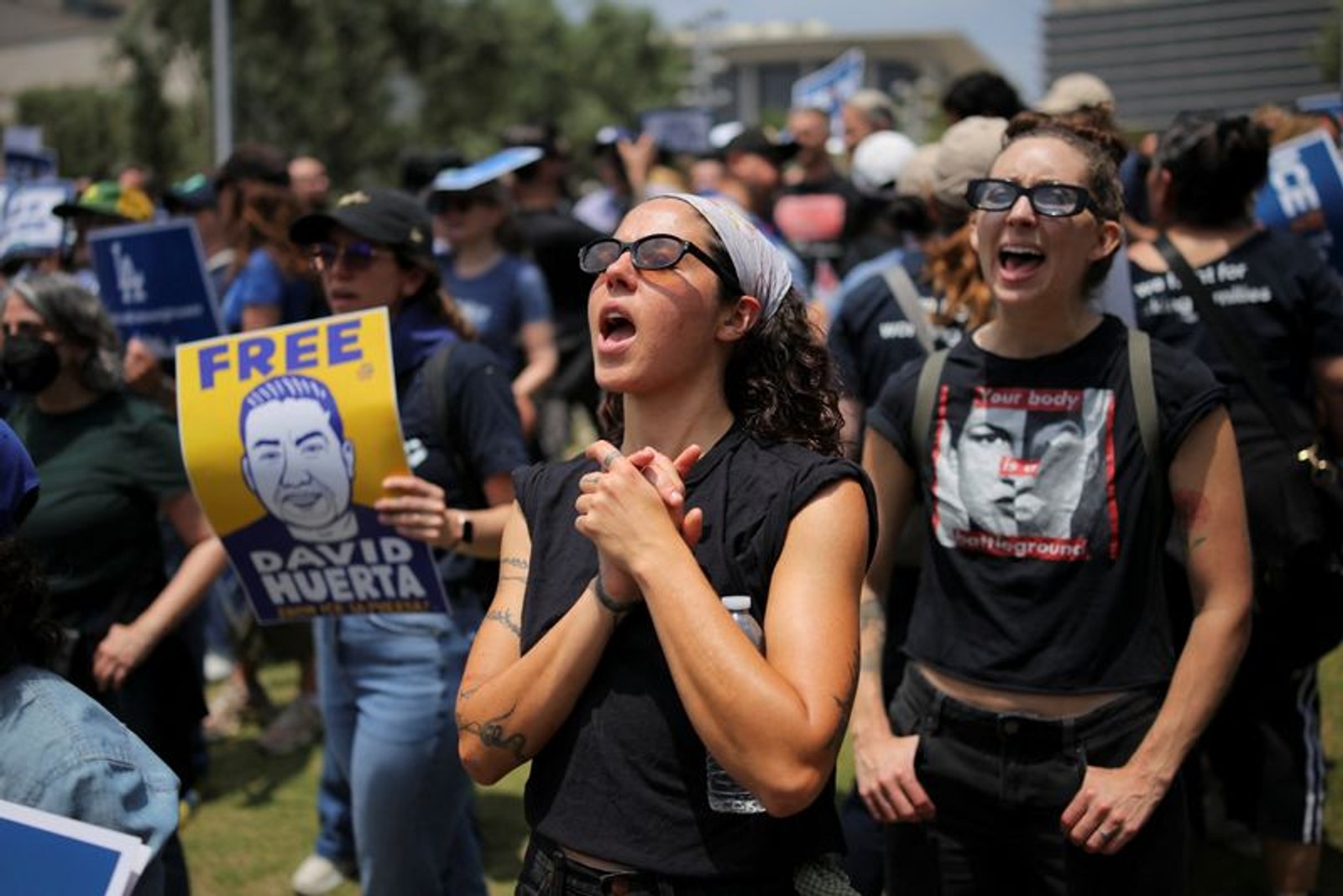 اتحادیه SEIU دوشنبه بعدازظهر به آکسیوس گفت که هوئرتا، که اتحادیه‌اش نماینده بیش از ۴۵ هزار نظافتچی، مامور امنیتی و کارکنان خدماتی فرودگاه در کالیفرنیا است، با وثیقه ۵۰ هزار دلاری از بازداشت فدرال آزاد شده است.