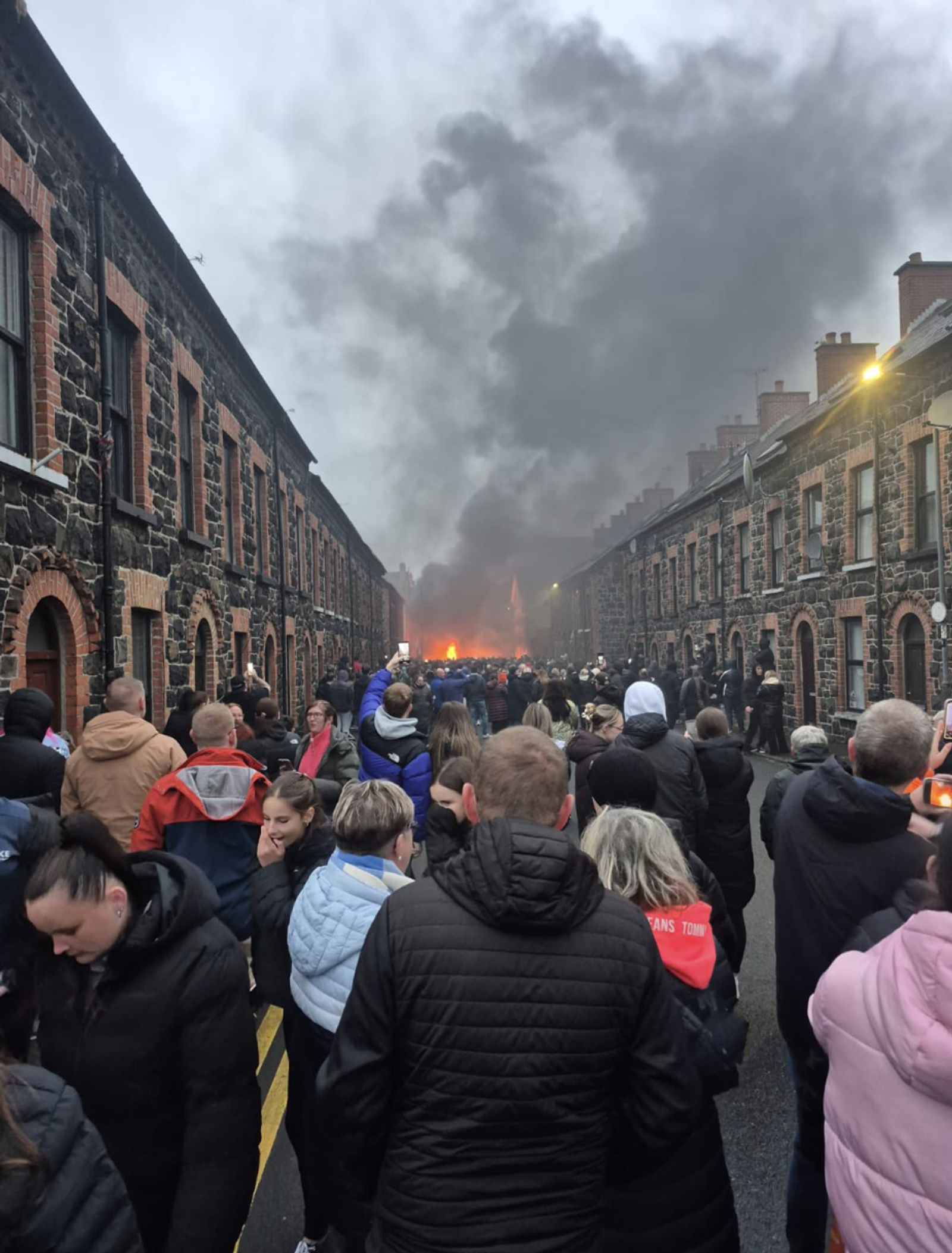 در ادامه درگیریها، حدود ساعت ۱۲:۳۰ بامداد، خانهای در خیابان لارن هدف حمله قرار گرفت و پس از شکستن پنجرهها، به آتش کشیده شد. ماموران پلیس به سرعت وارد خانه شدند تا ساکنان را از محل خارج کنند؛ در حالی که تماشاگران نقابپوش از صحنه فیلمبرداری و آن را در پلتفرمهایی نظیر تیکتاک منتشر میکردند.