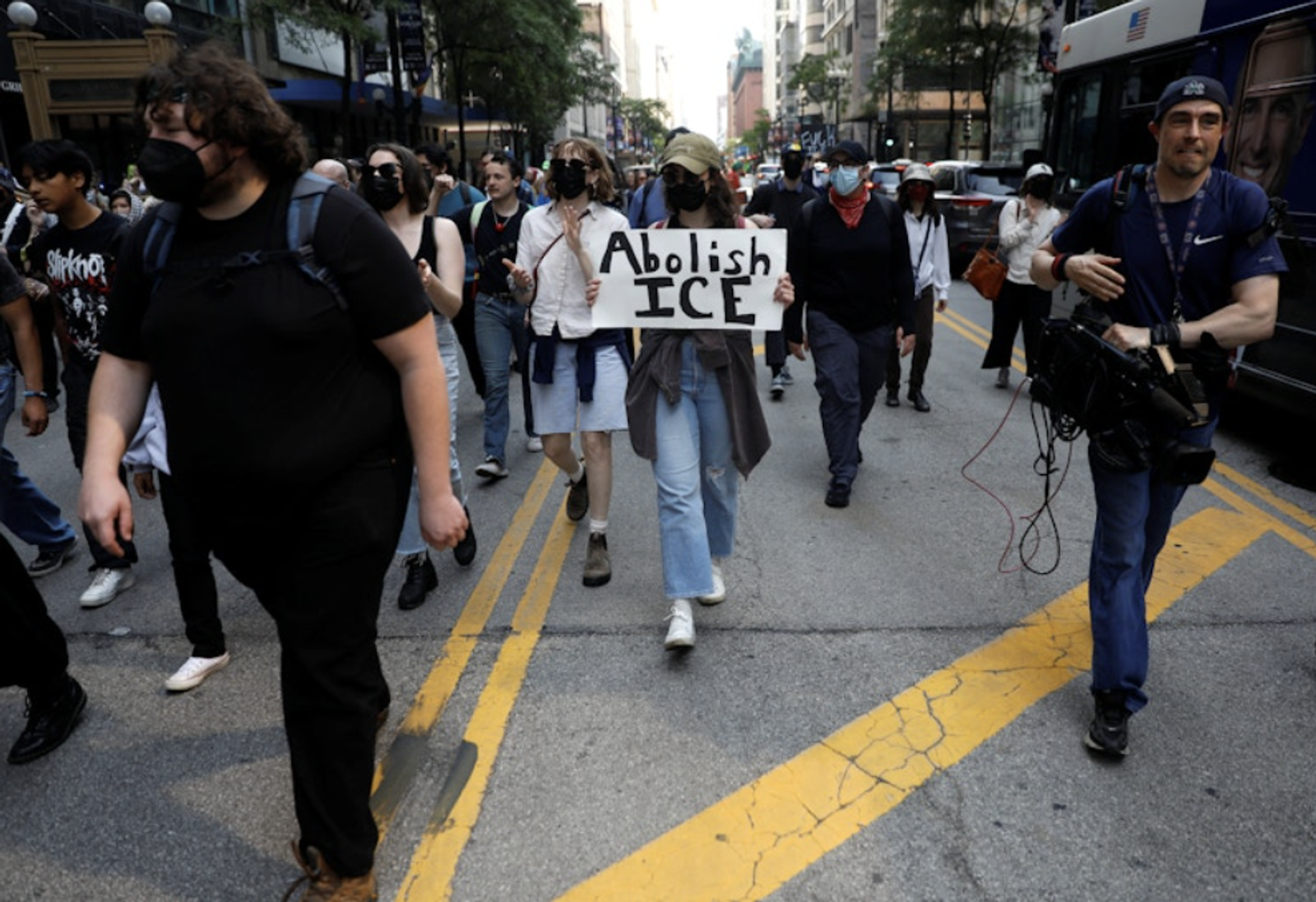 سهشنبه بعدازظهر، حدود ۱۰۰ نفر از معترضان در مرکز شهر شیکاگو راهپیمایی کردند و با سردادن شعارهایی از جمله «نه به نفرت، نه به ترس، مهاجران خوشآمدند»، خواستار انحلال اداره مهاجرت و گمرک آمریکا شدند.