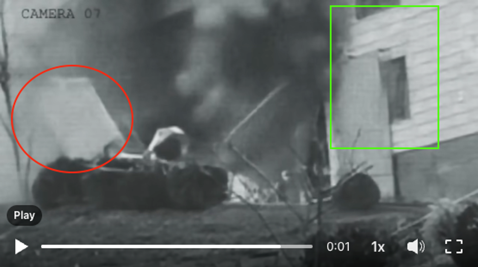 علاوه بر این، بررسی دقیق لحظه انفجار در ویدیوی منتشرشده نشان میدهد که پس از برخورد، بخشهایی از دروازه فلزی اوین بر روی شمشادهای قابل مشاهده در تصویر سقوط میکنند، اما این گیاهان بدون آسیب باقی میمانند.