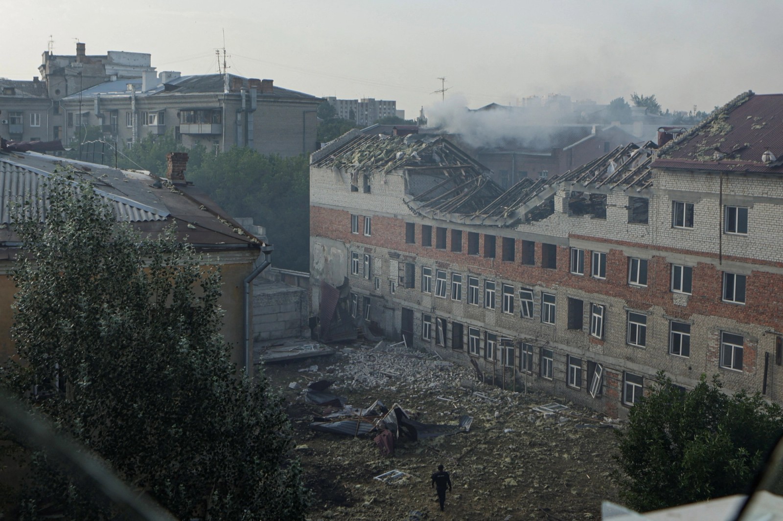 ویرانی‌ها برجا مانده از حمله پهپادی روسیه به شهر خارکیف، ۲۰ تیر
