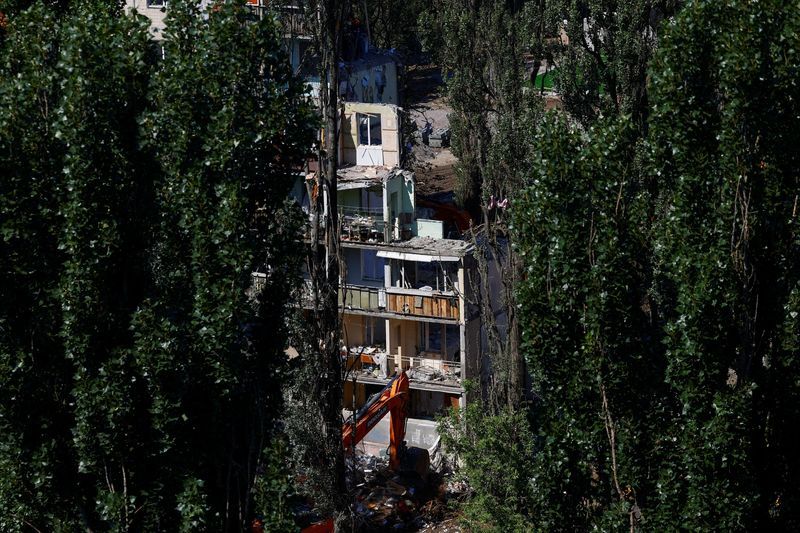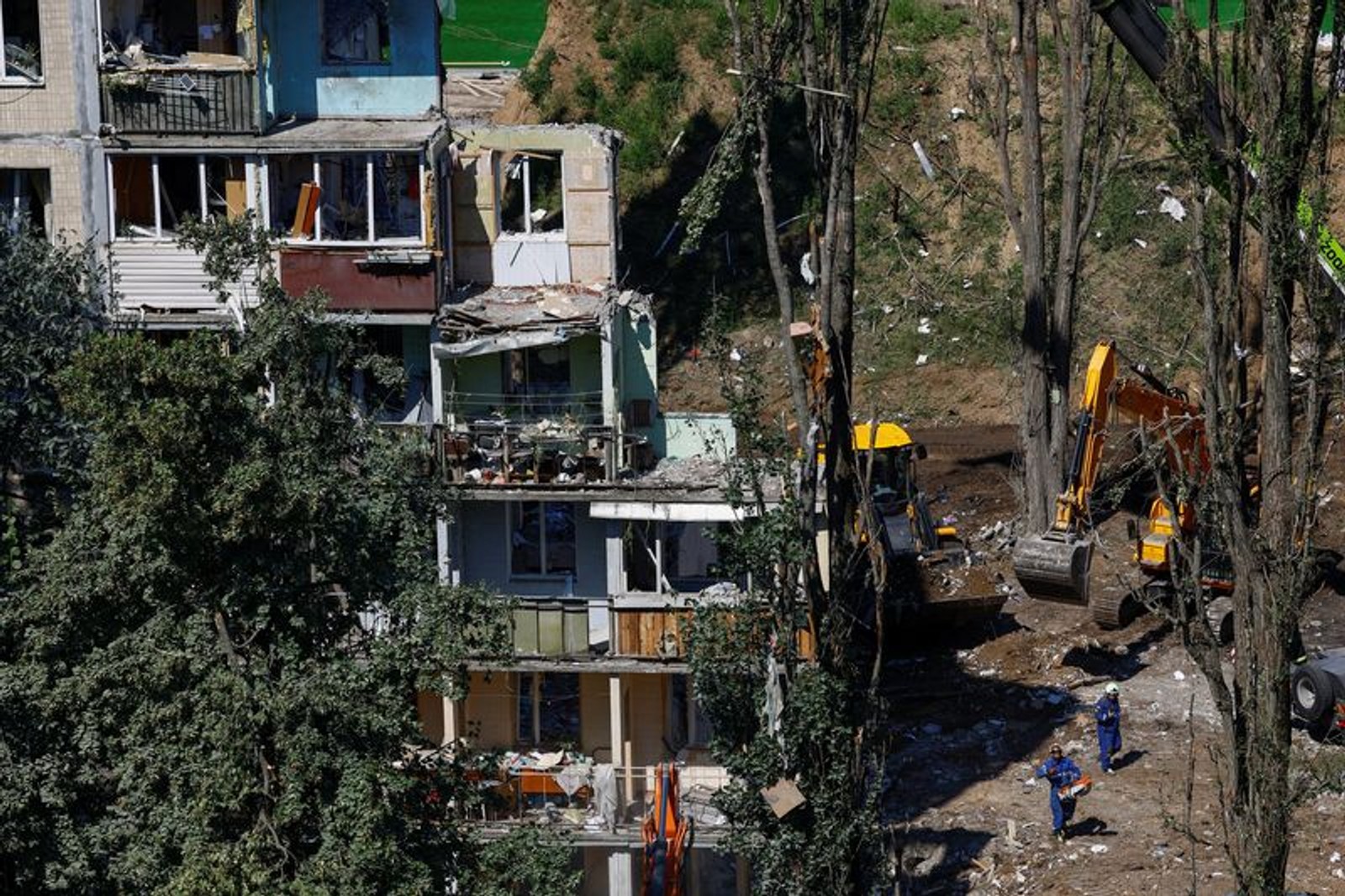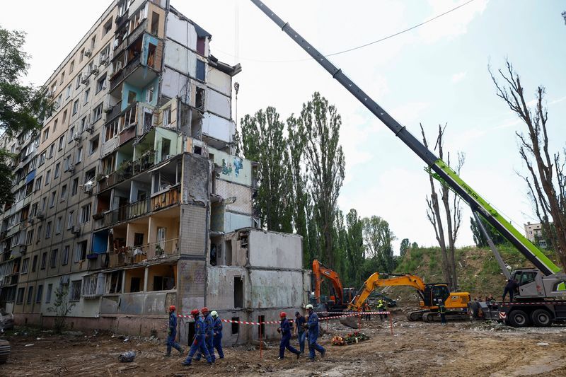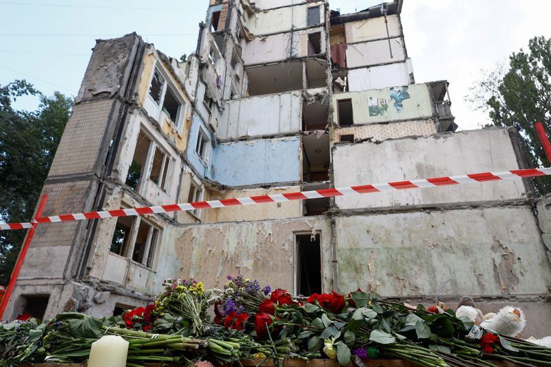 جمعه، مردم سوگوار کی‌یف در مقابل ساختمان مسکونی ویران‌شده گل گذاشتند و شمع روشن کردند؛ در حالی که بیل‌های مکانیکی قطعات سنگین آوار را جابه‌جا می‌کردند.