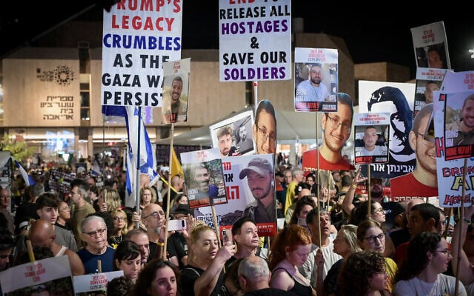 هم‌زمان با این تحولات، هزاران معترض اسرائیلی که خواستار توافقی برای پایان جنگ و بازگرداندن گروگان‌های باقی‌مانده نزد حماس هستند، در تل‌آویو دست به تجمع زدند.