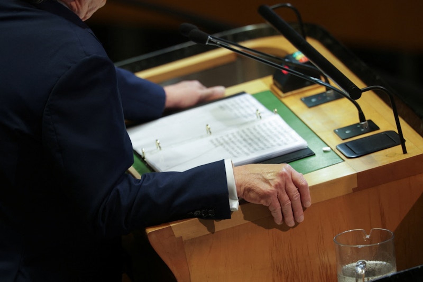 با اینحال در جریان سخنرانی او، یک مقام سازمان ملل گفت تلهپرامپتر در واقع از سوی کاخ سفید اداره میشد.