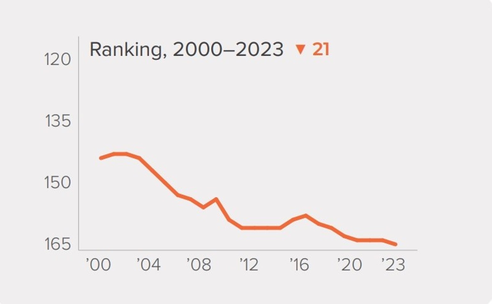 در یازدهمین نسخه سالانهای که از این شاخص منتشر شده و تا سال ۲۰۲۳ را بررسی کرده است، ایران در رتبه ۱۶۴ جدول قرار گرفته است.