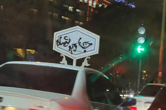 تصویر رسیده به ایران اینترنشنال نشان میدهد مردم معترض در اصفهان، روی یکی از تابلوهای خیابان در این شهر شعار «جاوید شاه» را اسپری کردند.