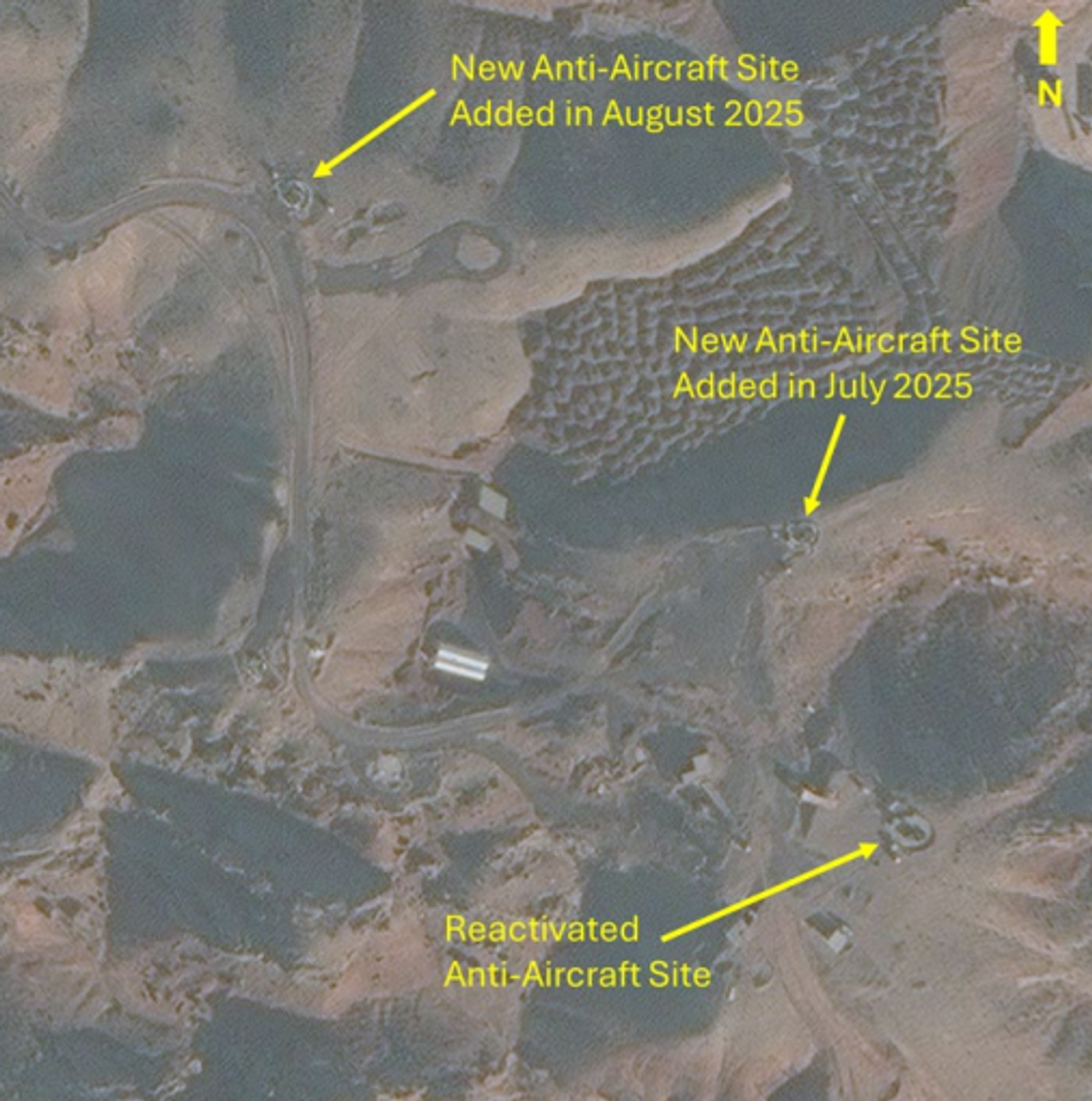 گزارش موسسه علوم و امنیت بینالمللی همچنین به ارتقای دفاع فعال در اطراف سایت پارچین اشاره میکند. بر اساس این گزارش، جمهوری اسلامی در ژوئیه ۲۰۲۵ یک موضع توپخانه ضدهوایی را فعال کرده که دستکم از سال ۲۰۱۷ غیرفعال بوده است. دو موضع ضدهوایی فعال جدید نیز به مجموعه اضافه شده است. یکی از این مواضع در ژوئیه و دیگری در اوت ۲۰۲۵ ساخته شدهاند.