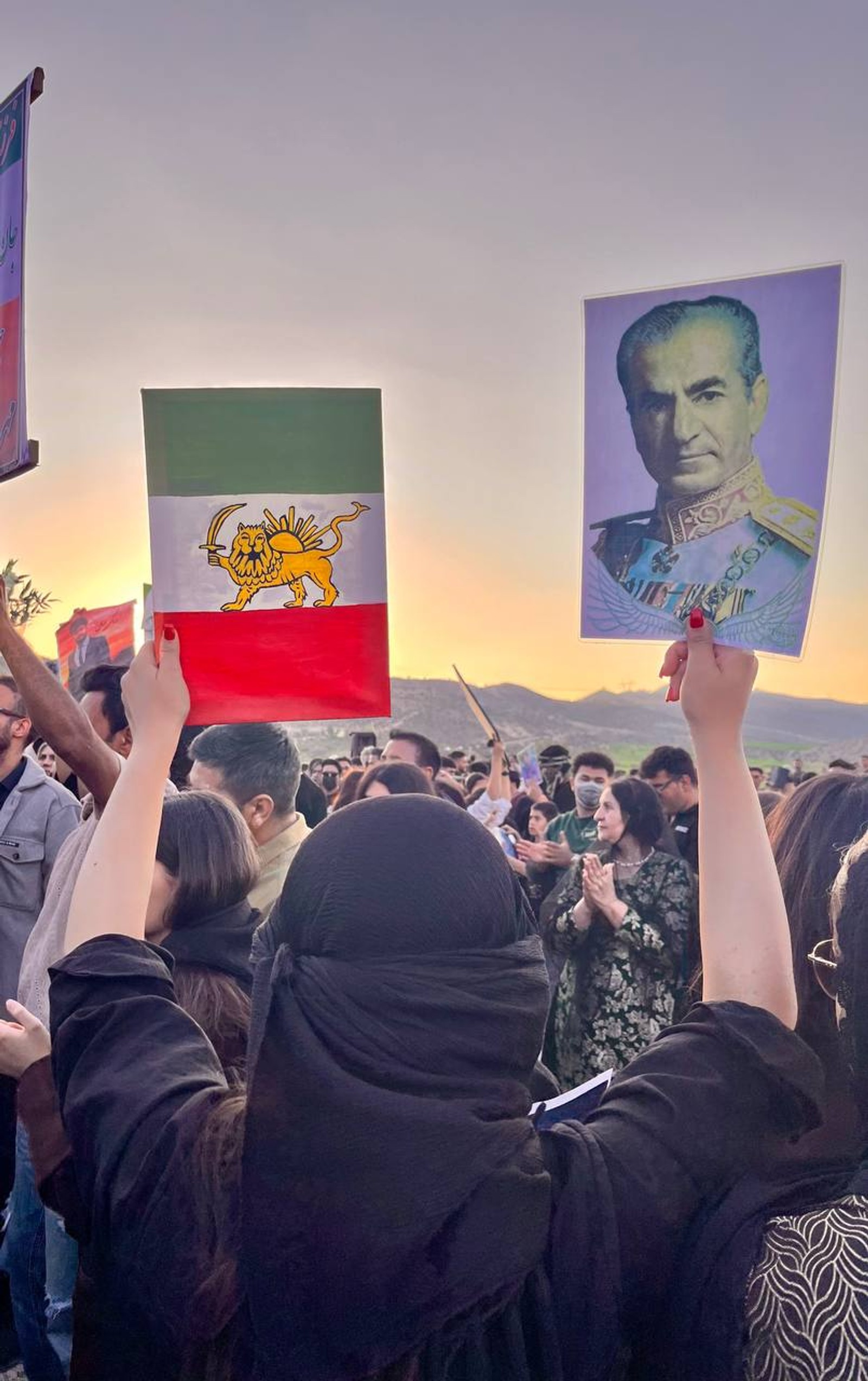حاضران پرچمهای شیروخورشید به دست گرفتند و در حمایت از شاهزاده شعار دادند.