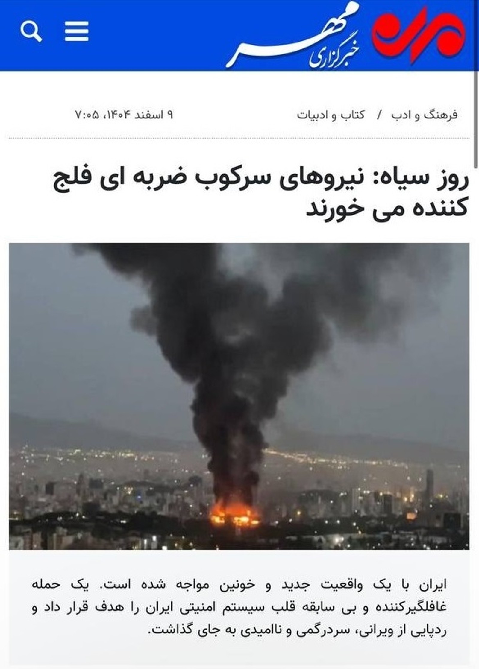 خبرگزاری دولتی ایرنا هک شده و در صفحه اول آن، عنوان «ساعت‌های وحشتناکی برای نیروهای امنیتی رژیم آیت‌الله‌ها: سپاه و بسیج ضربه فلج‌کننده خورده‌اند» درج شده است.